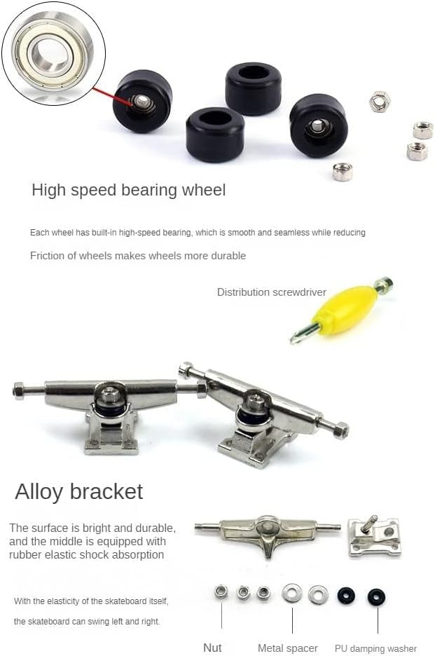 You’ll love the high-quality alloy trucks that bring serious stability and durability. Whether you’re grinding rails or landing mini-ollies, these trucks are designed to handle your wildest fingerboard sessions without a hitch.
