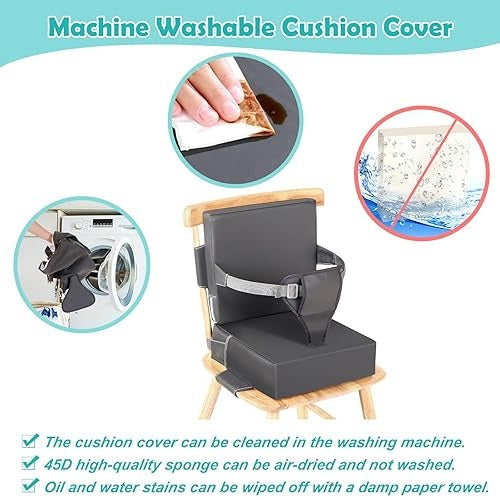 The adjustable straps fit a variety of dining chairs, ensuring a stable fit. You can also stack cushions for extra height as your child grows.