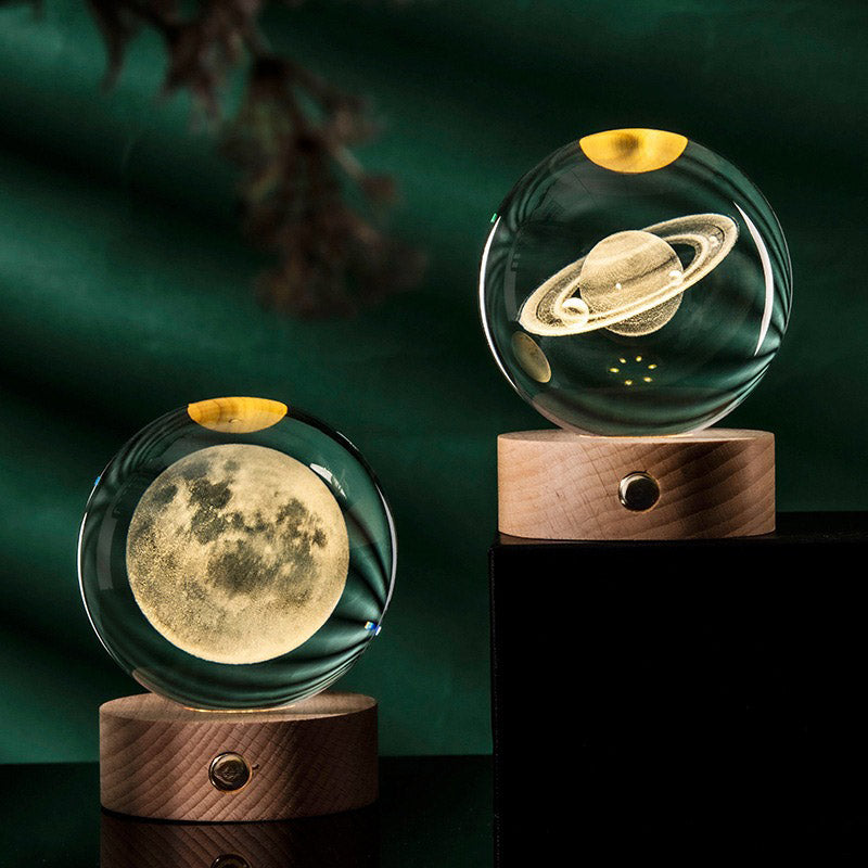 Inside the crystal lies a 3D laser-engraved design creating a stunning illusion of depth and motion. From constellations to planetary orbits, every pattern feels alive, inviting you to explore the cosmos from the comfort of your home.