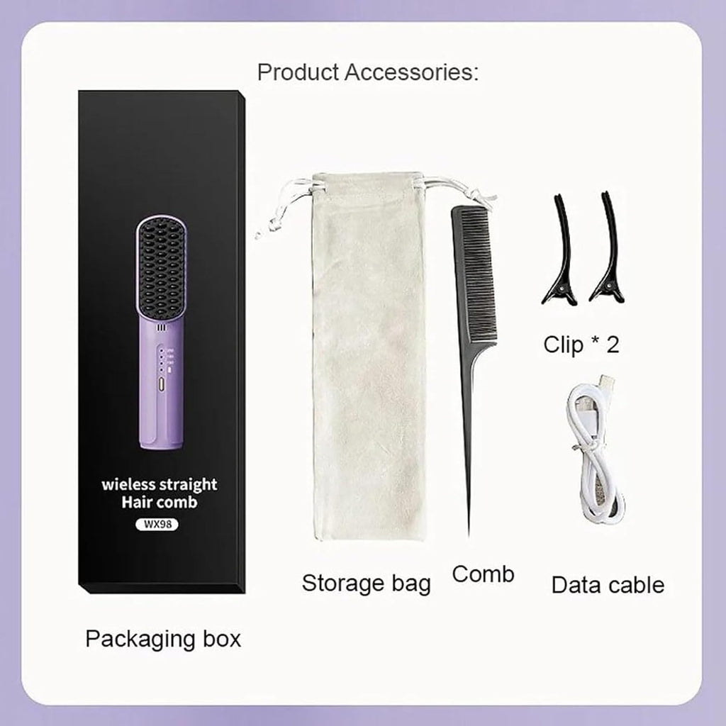 Experience freedom, elegance, and power with the Cordless Hair Straightener Brush your portable salon in the palm of your hand. Designed for busy mornings, travel adventures, or quick touch-ups, it lets you straighten, smooth, and shine your hair effortlessly, anytime, anywhere.