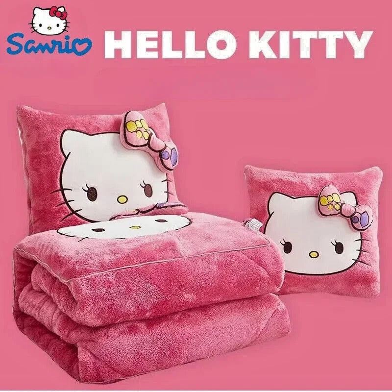 Discover the Hello Kitty 2-in-1 embroidered pillow blanket a charming companion that brings you comfort wherever you go. Designed to switch instantly between a fluffy cushion and a warm nap blanket it makes your quiet moments even sweeter.