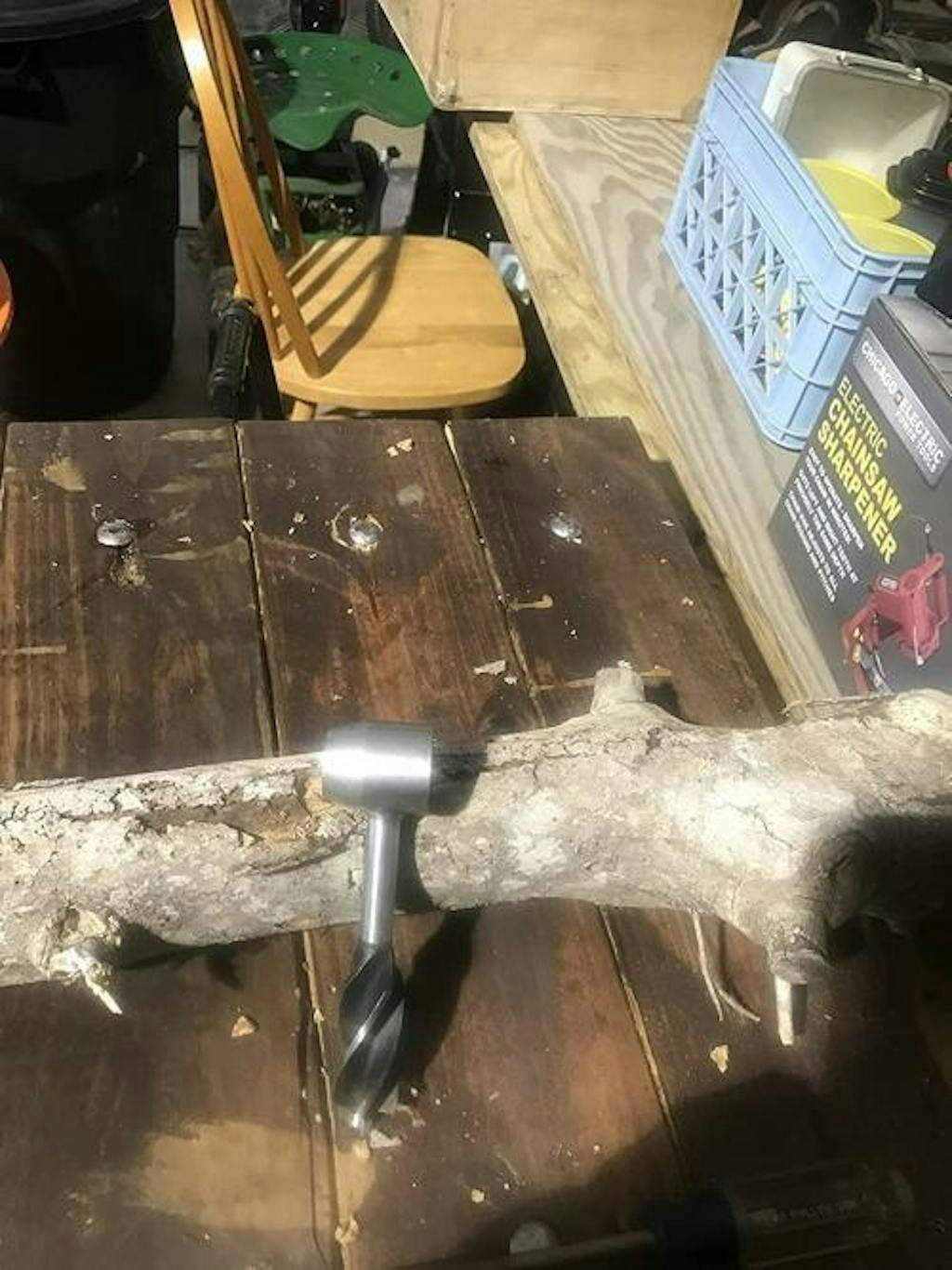 Thanks to the scotch-eye design you turn a branch into a custom wooden handle and the integrated peg maker lets you craft pegs that fit exactly into your drilled holes for solid construction.