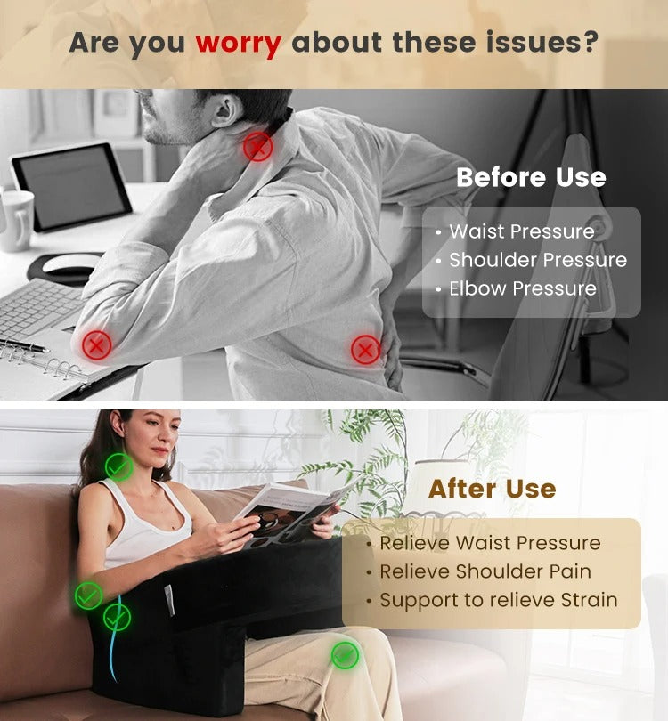 This pillow features ergonomic armrests that embrace your shoulders, neck, and back, easing pressure and helping you sit upright without discomfort. Whether you’re reading, watching TV, or working from bed, you’ll feel supported and relaxed from every angle.