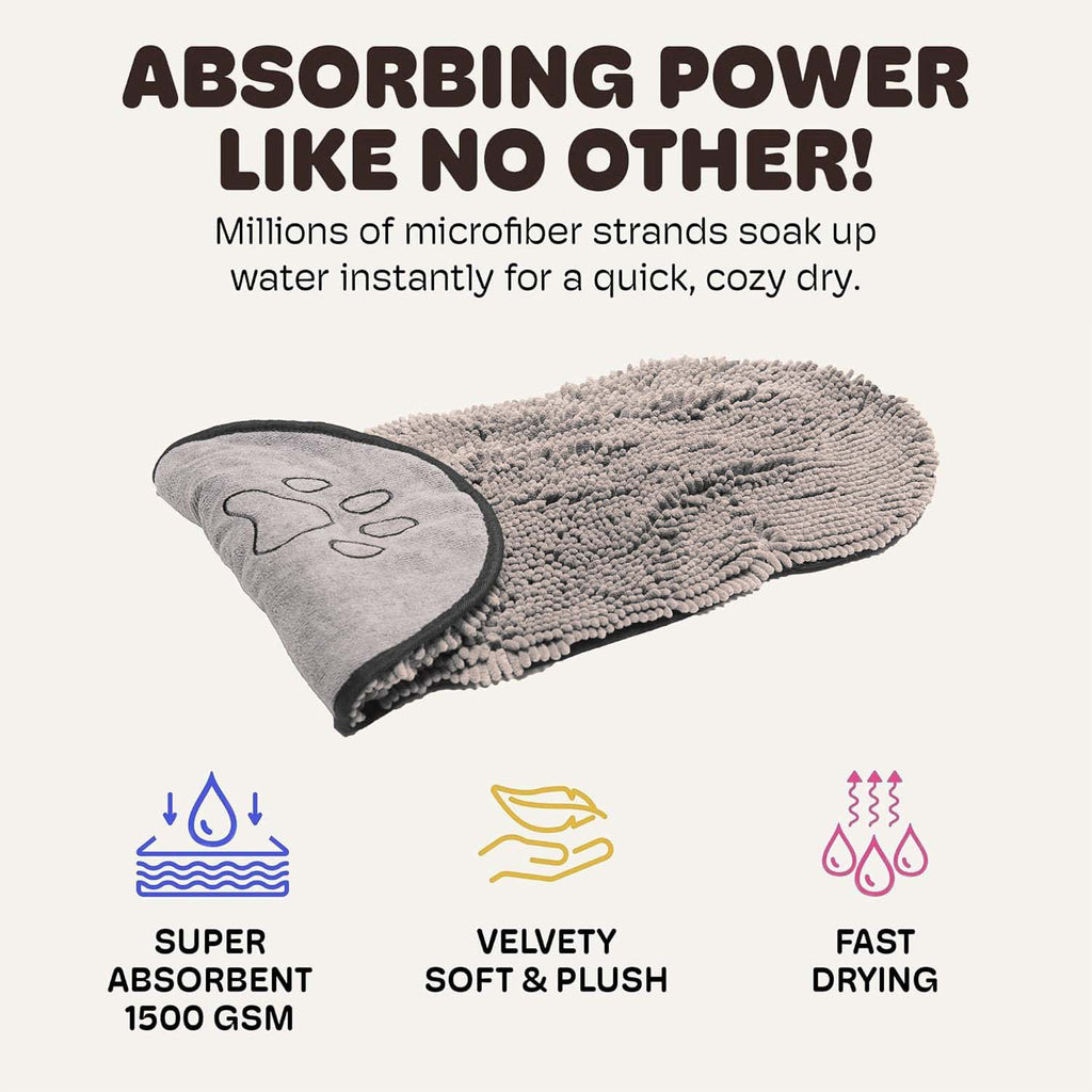 Compact and portable, this towel is your go-to travel buddy for parks, beaches, or road trips. Wherever your dog gets wet, this towel ensures they’re dry, warm, and happy in minutes.