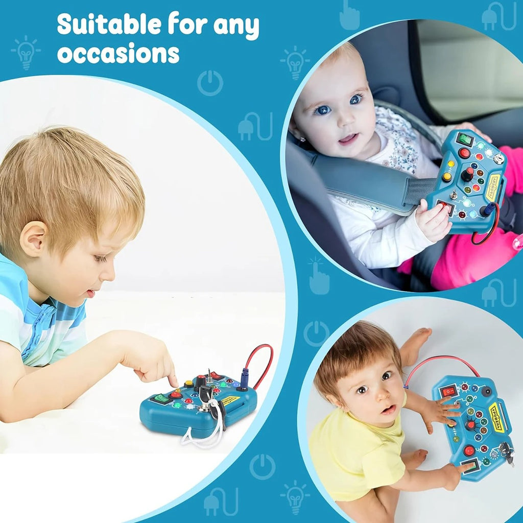 Encourage your little one to explore safely and independently. Each interactive element from the colorful switches to the movable levers is carefully designed to engage your child’s fine motor skills and problem-solving abilities while keeping them entertained for hours.