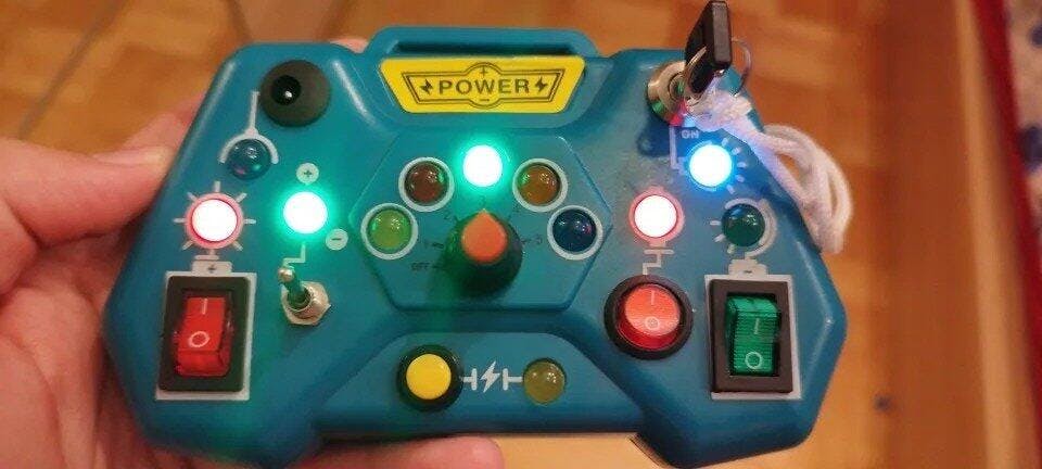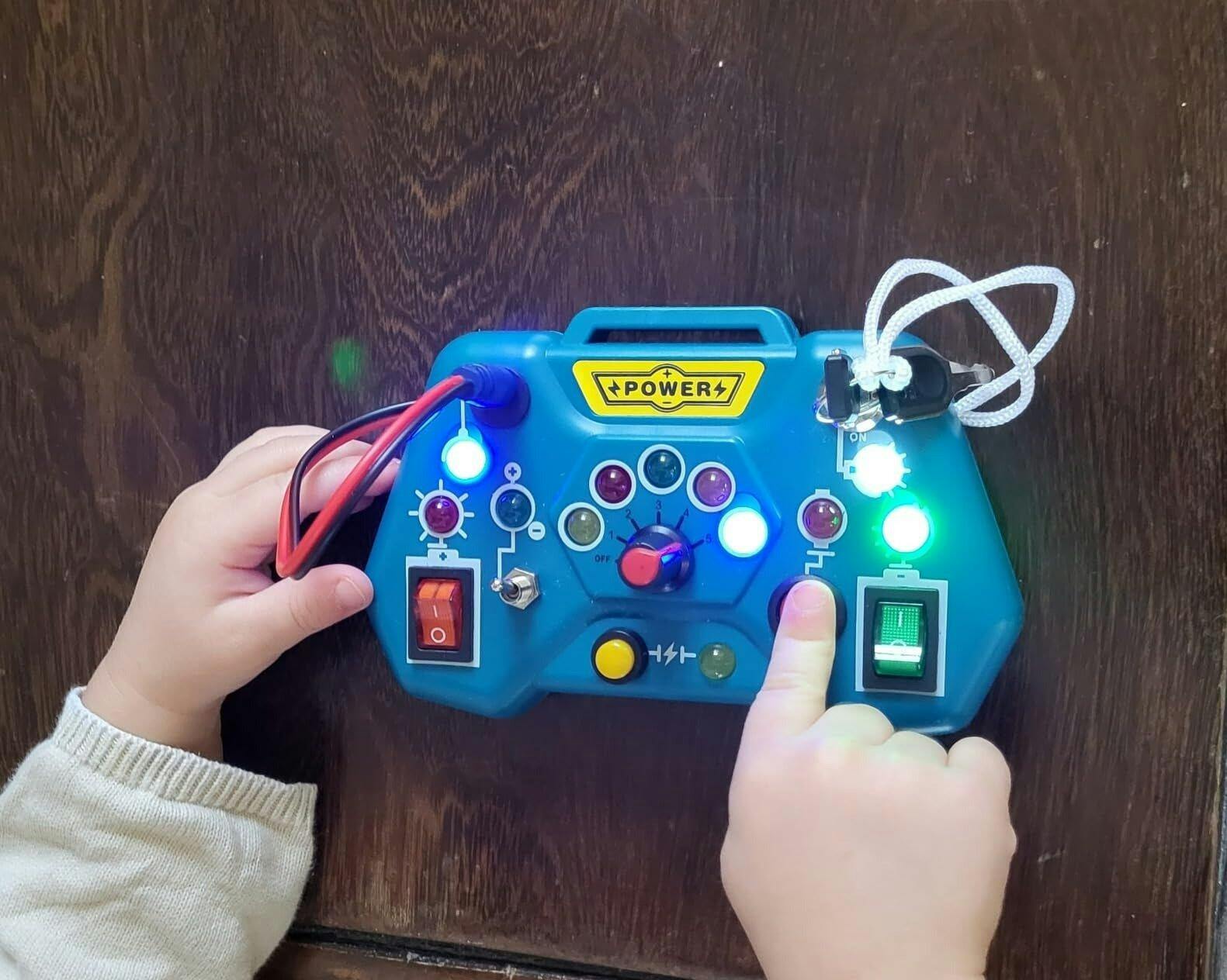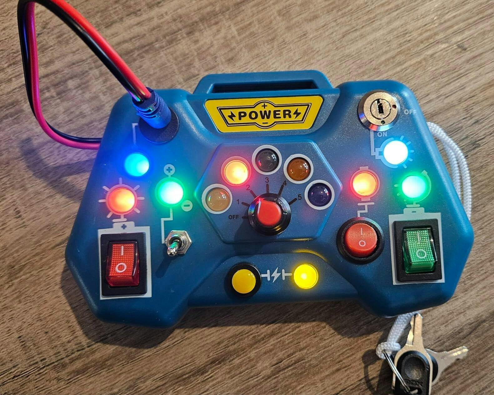 Features: 6 interactive switches LED lights movable levers
