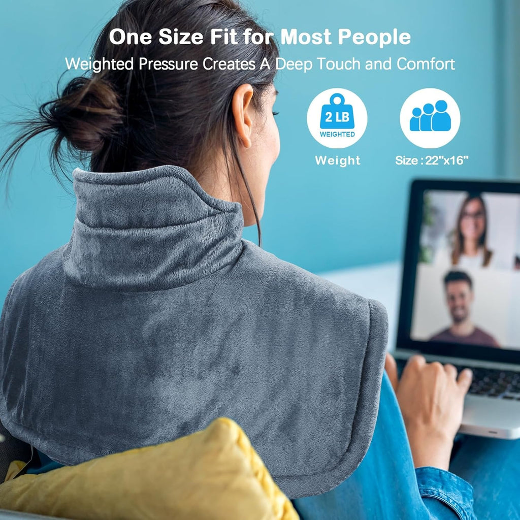 Measuring 23 x 17 inches this pad drapes comfortably across your shoulders and upper back, offering generous coverage for men and women alike. It’s perfect for office breaks, post-workout recovery, or cozy evenings at home, giving you all-around warmth whenever you need it.