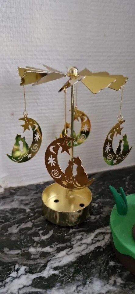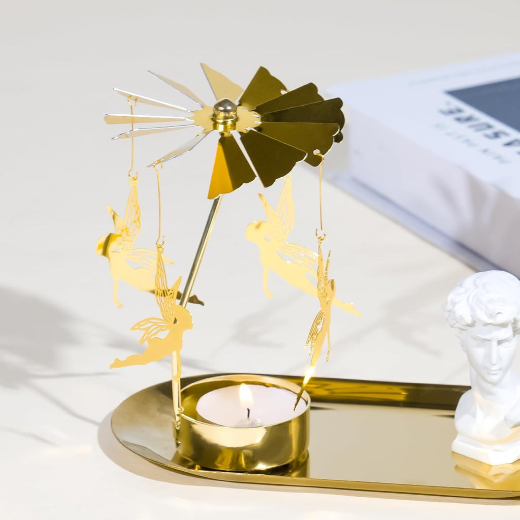As the tea light warms the air the top gently spins in silence. No batteries, no cables, just the beauty of natural heat-powered motion.