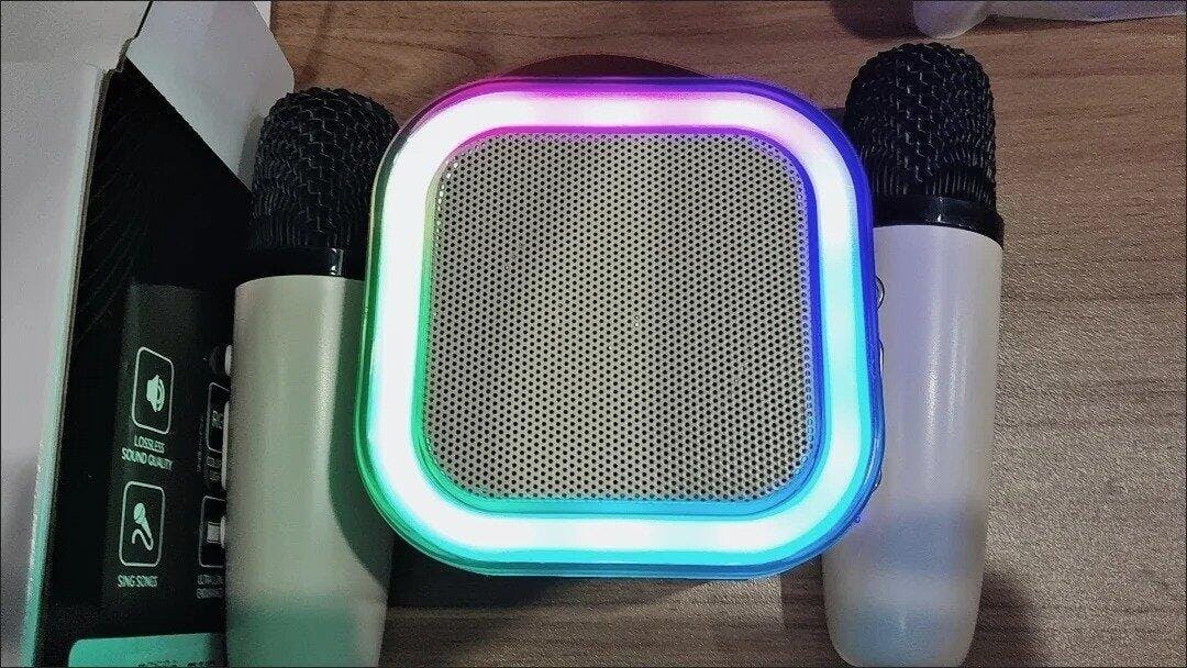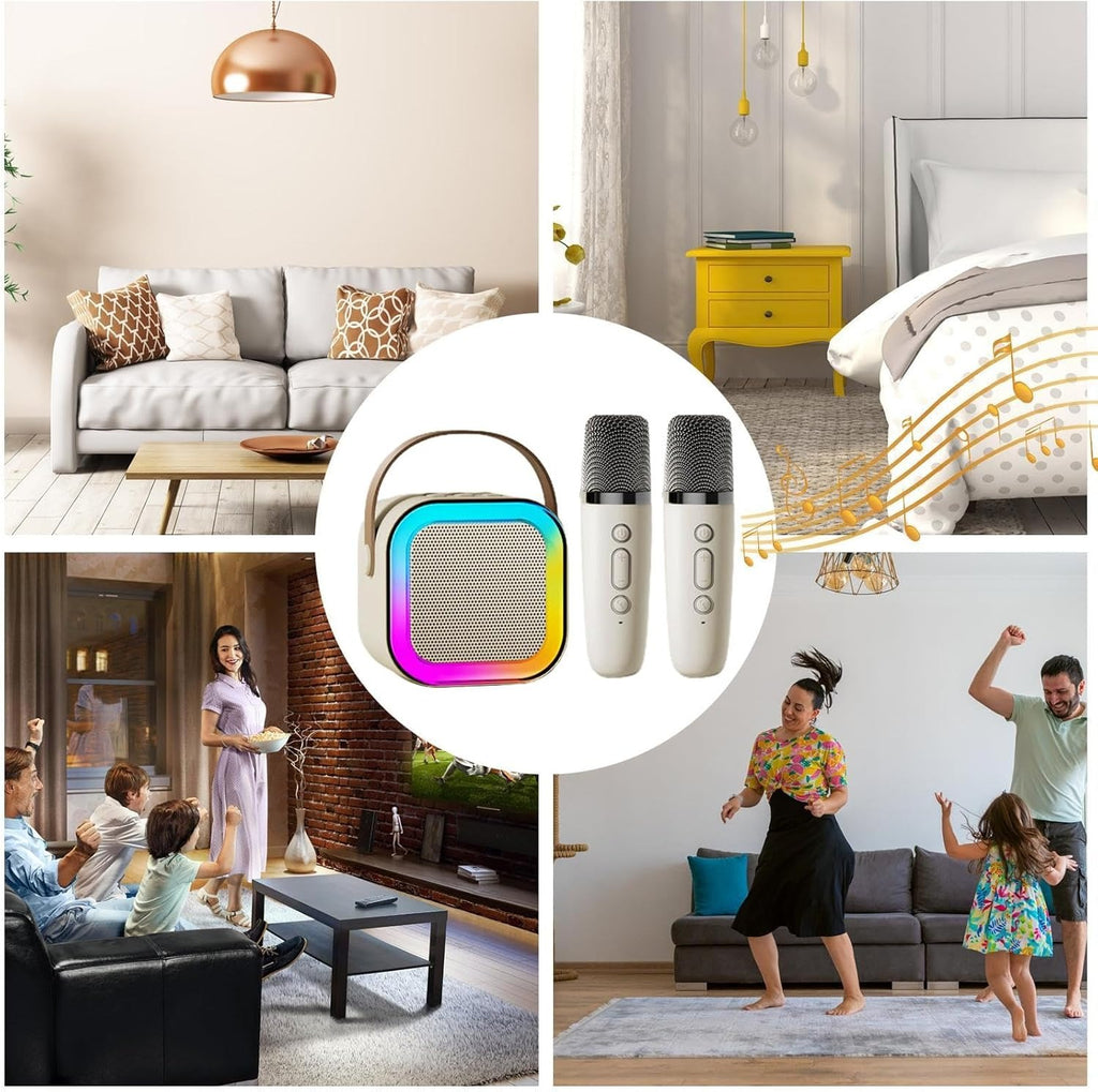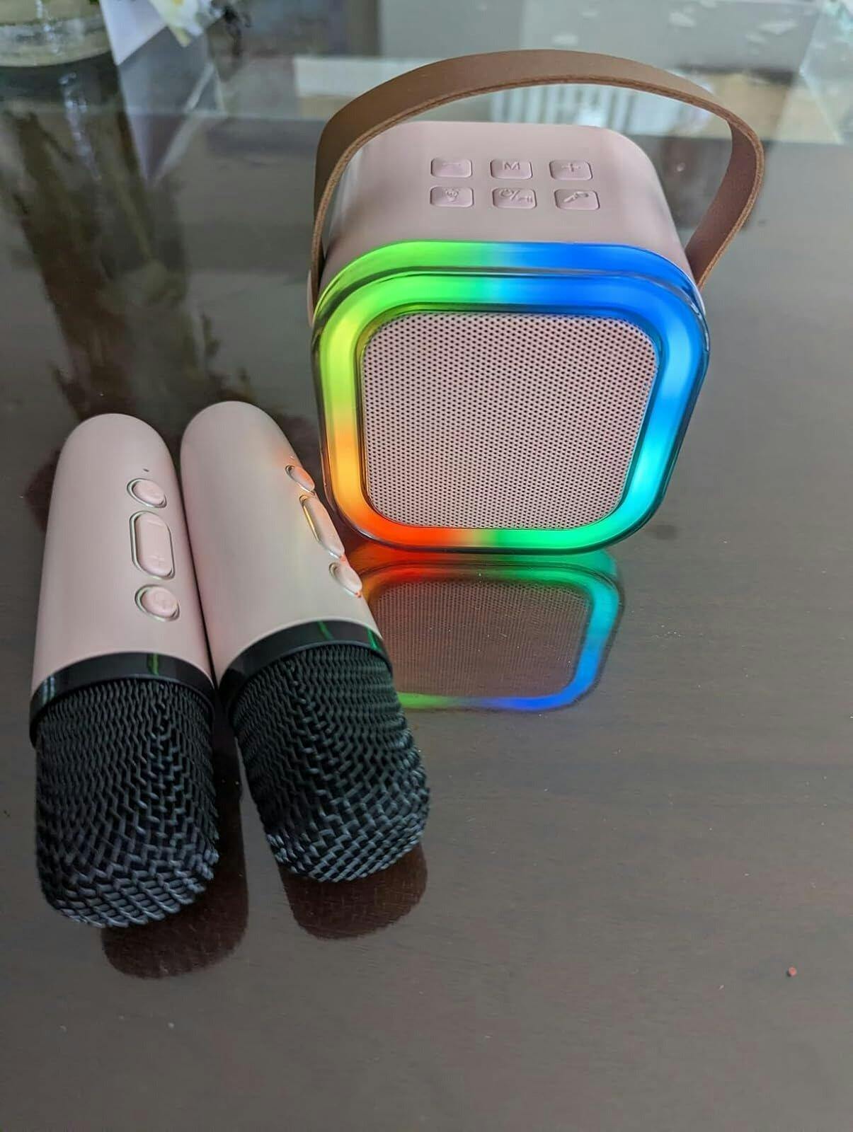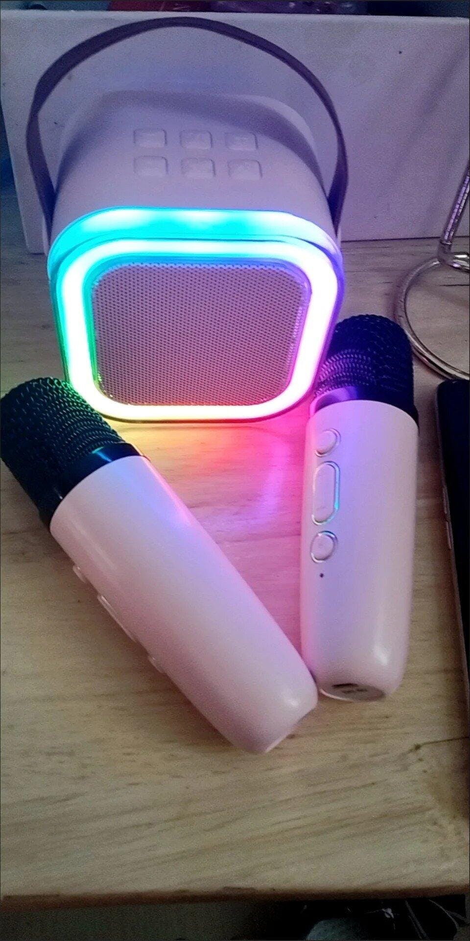 Ready to steal the spotlight wherever you are ? This portable karaoke machine transforms your living room, backyard, or road trip into an instant concert. With Bluetooth connectivity, LED party lights, and two wireless microphones, you have everything you need to create memories and music.