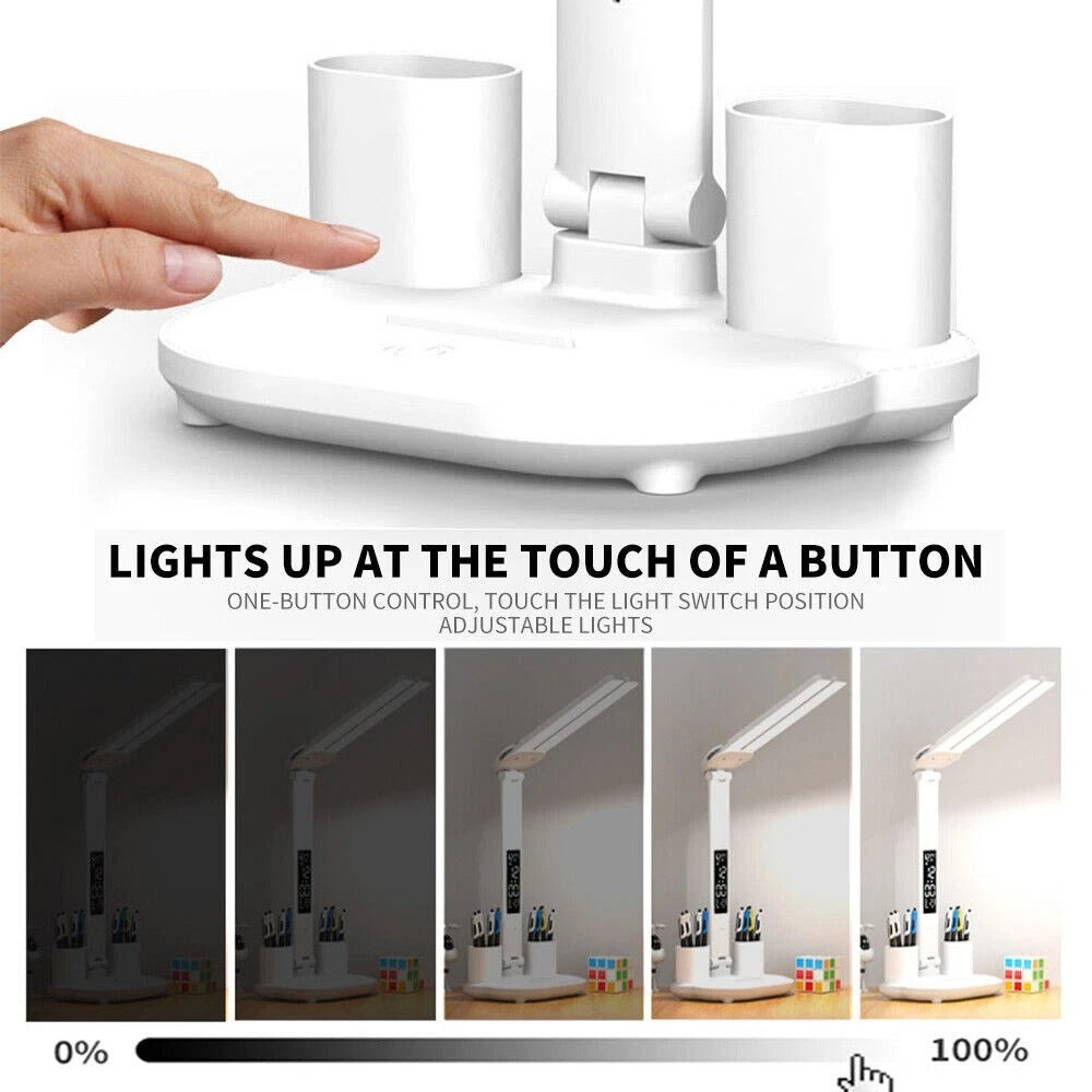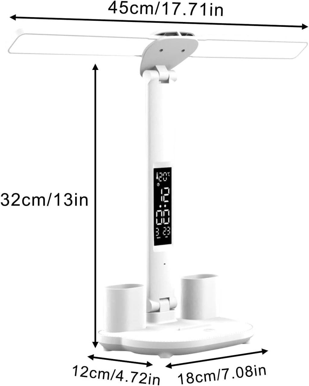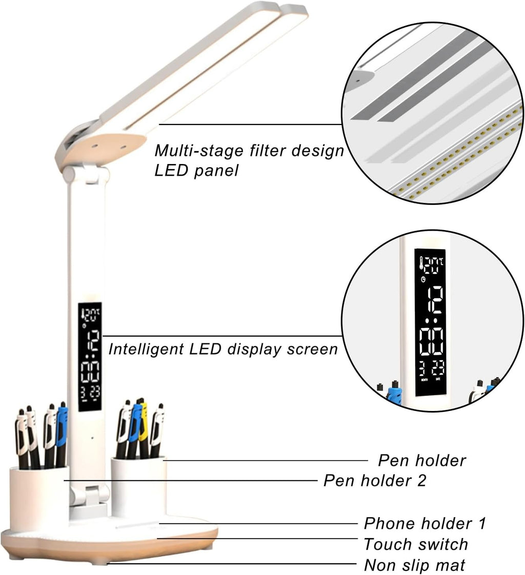 Rechargeable LED Desk Lamp – Foldable Double-Head Light with Digital Clock
