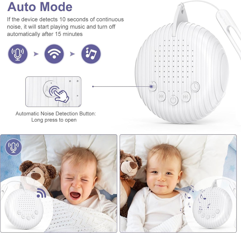 The auto sound sensor reactivates soothing audio whenever noise or crying is detected then stops after 15 minutes of calm. You can finally rest knowing this smart device keeps watch over your peace while you sleep.