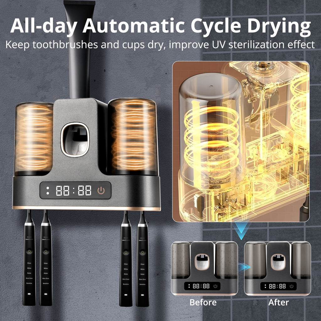 Transform your daily routine with a hygienic, organized, and hands-free system that keeps your toothbrushes fresh and ready to use. The smart toothbrush holder ensures your bathroom looks cleaner and your smiles stay healthier.