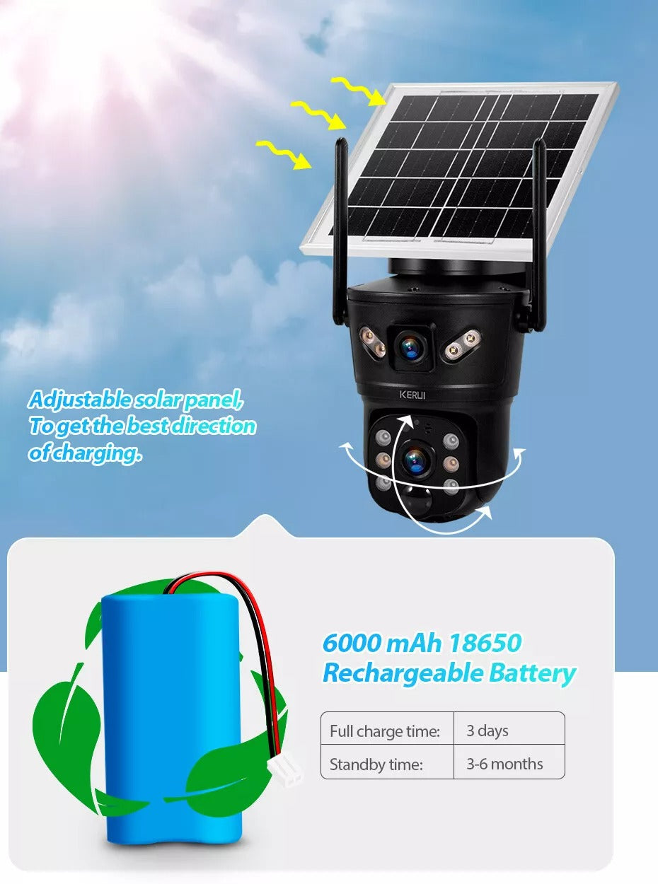Bring peace of mind right to your fingertips with the solar-powered 4G WiFi security camera your smart and self-sufficient guardian that never sleeps. Designed for those who value safety and simplicity this intelligent camera keeps you connected to what truly matters anytime and anywhere.