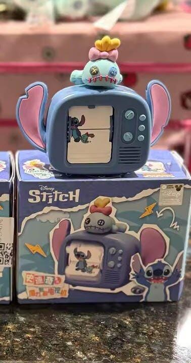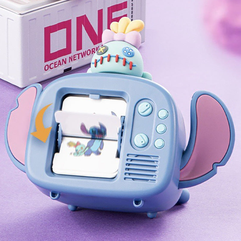 Pull the discreet string mechanism and watch the TV screen flip through moving Stitch scenes like a tiny cartoon in motion. You get a satisfying, interactive moment every time you play with it.
