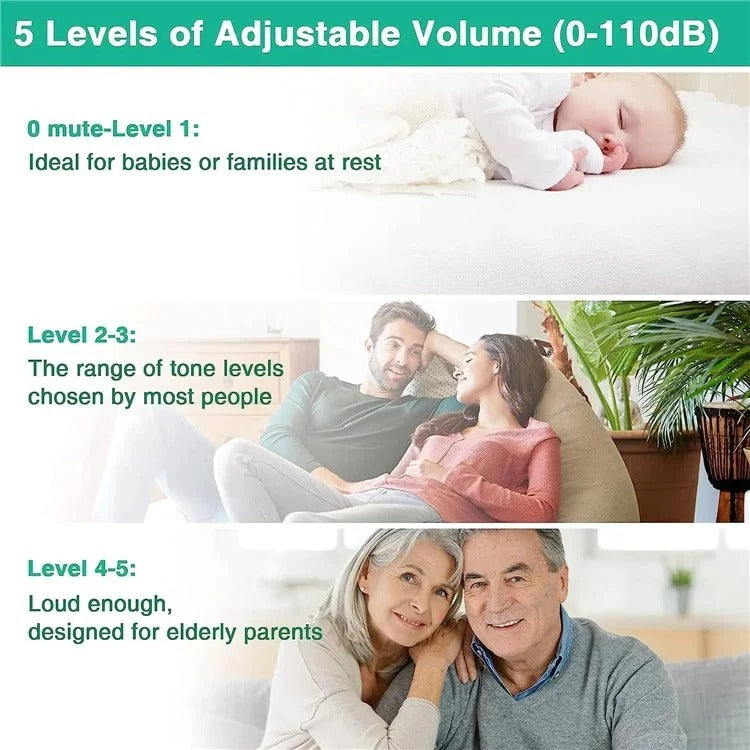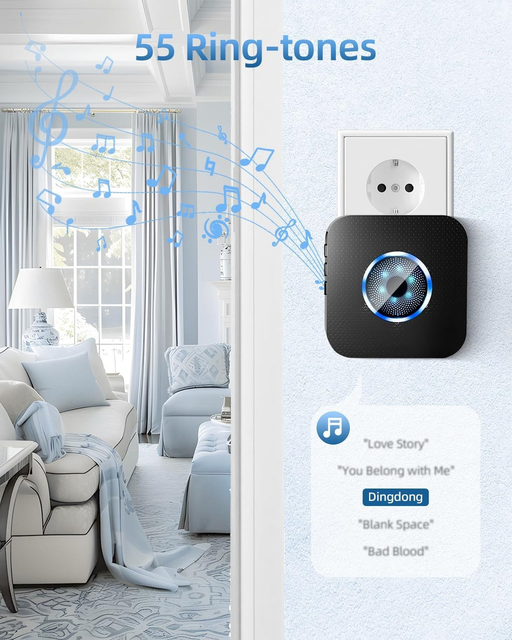 Enjoy more than just sound the built-in RGB LED light flashes in multiple colors with each ring, adding a modern glow that’s both decorative and practical. It’s ideal for hearing-impaired users or those who prefer visual cues.