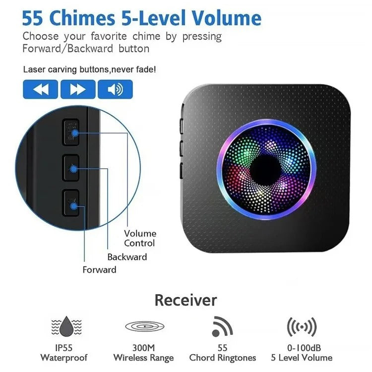 Bring style, innovation, and convenience to your doorstep with the Waterproof Wireless Doorbell with RGB Light. Designed for modern homes and busy lifestyles it ensures you never miss a visitor, even in the rain or across large distances. Because your comfort and security deserve a touch of brilliance.