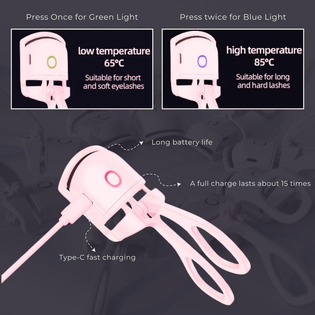 Portable Heated Eyelash Curler – Rechargeable with 2 Heat Settings