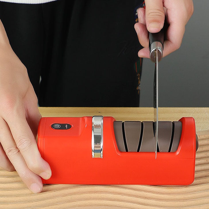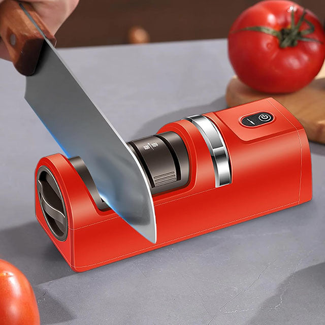 With its lightweight and portable design this electric sharpener easily fits in your kitchen drawer, backpack, or toolbox. Perfect for home cooks, professional chefs, or campers who like their tools sharp wherever they go.