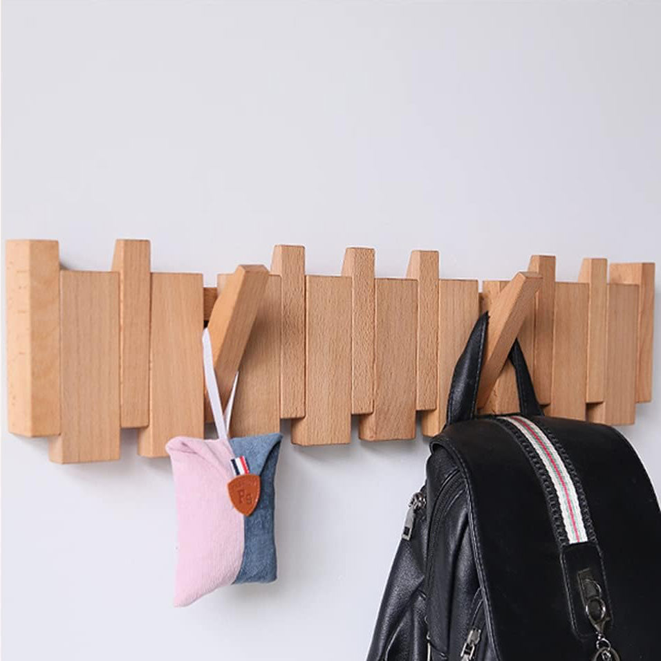 At first glance, it looks like a piece of contemporary wall art. But with a gentle press, six smooth wooden hooks fold down, ready to hold your essentials. It's decor and function, harmoniously combined in one sleek creation.