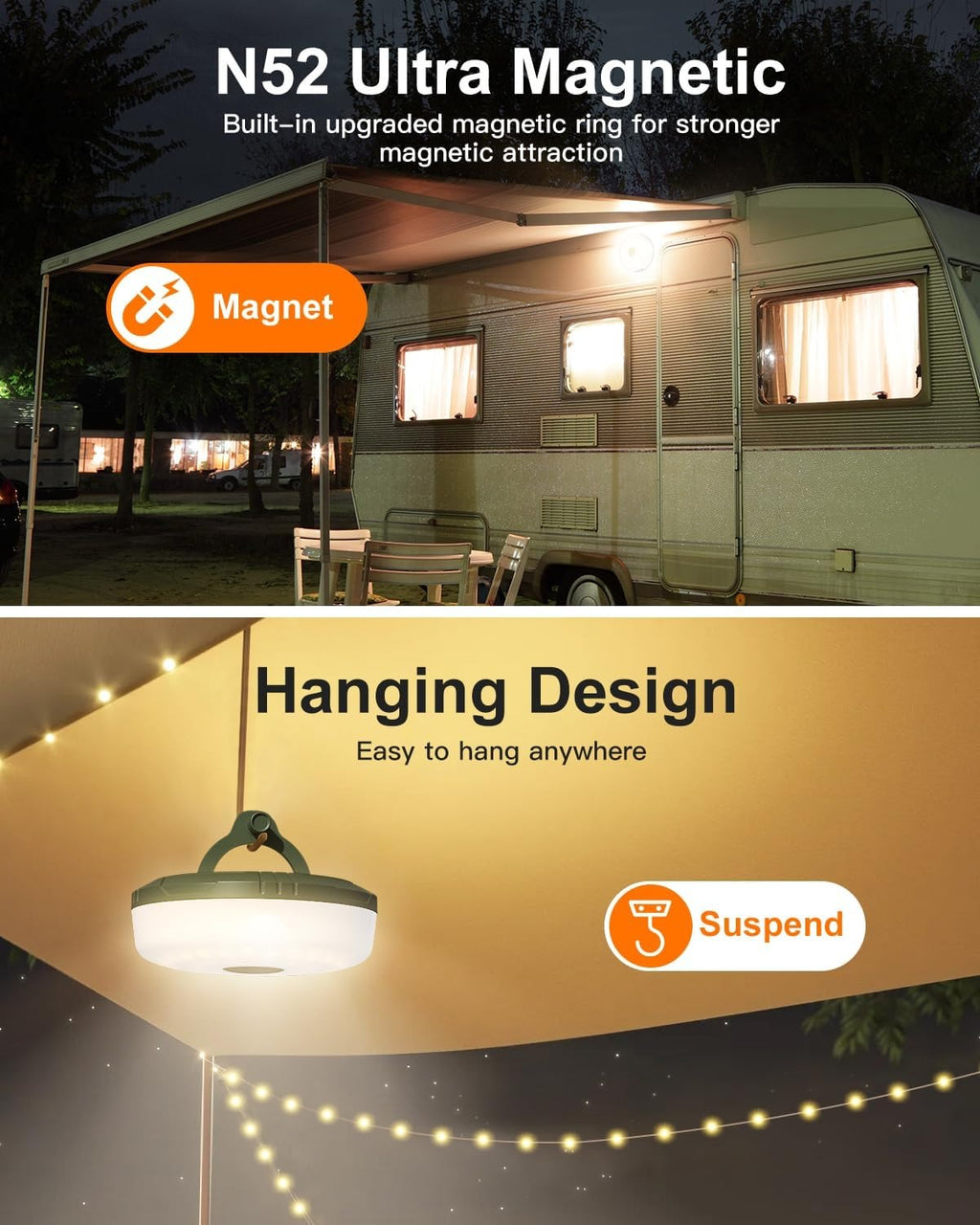Whether you're setting up camp in the wild or creating magic in your backyard, this 4-in-1 portable camping light is the ultimate companion you’ve been waiting for. With dual light systems, 10-meter retractable string, and a body built to brave the elements, you’ll never have to choose between mood and utility again.
