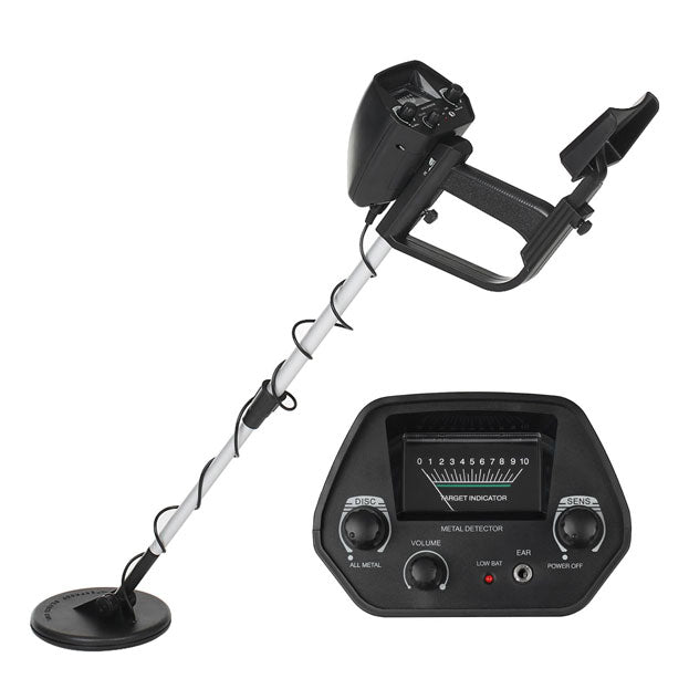 For greater accuracy and efficiency, the metal detector features a meter to indicate the presence of metal and a pinpointer that oscillates to precisely locate the object.