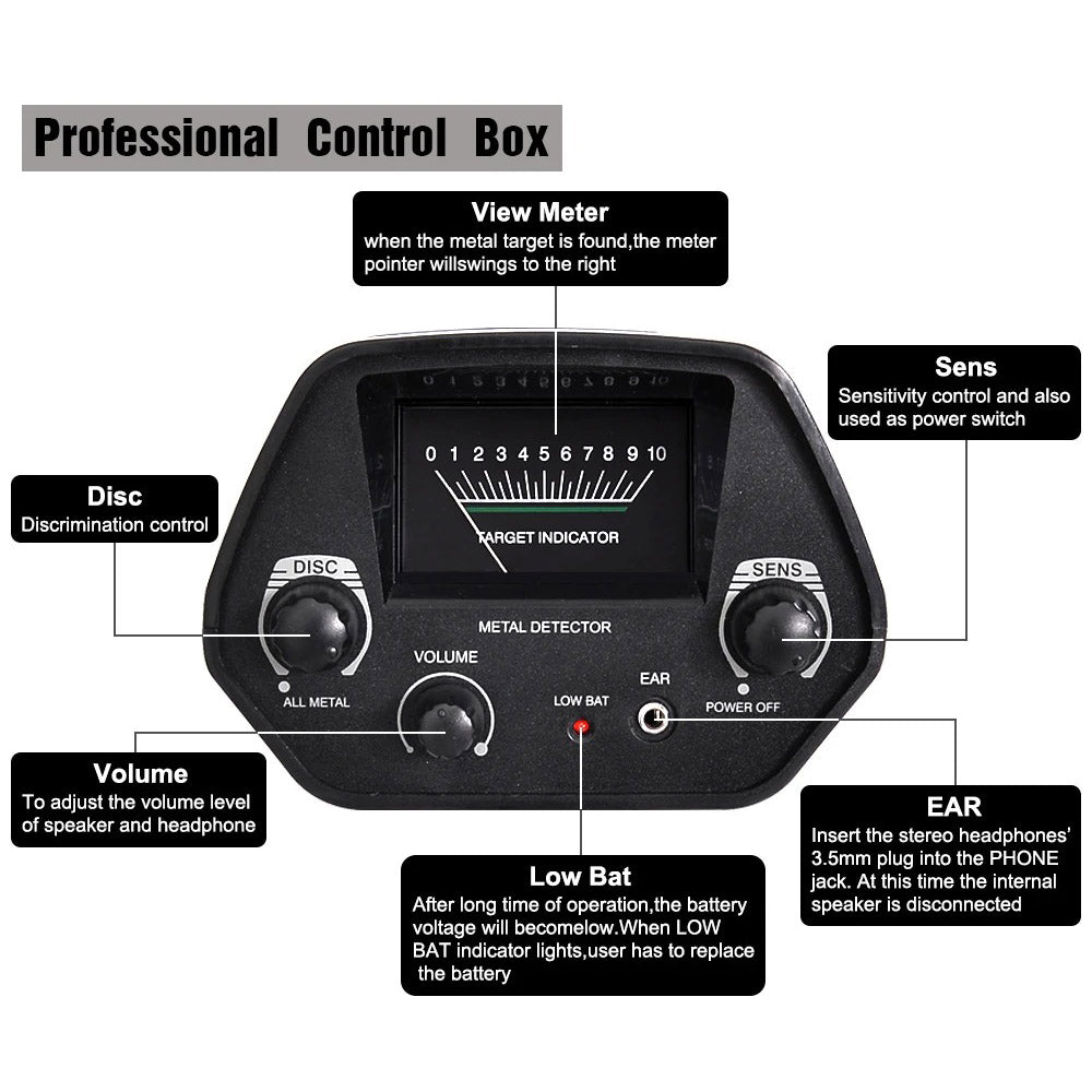 This device can detect all kinds of metals, including gold, silver, coins, jewelry, and relics buried underground.