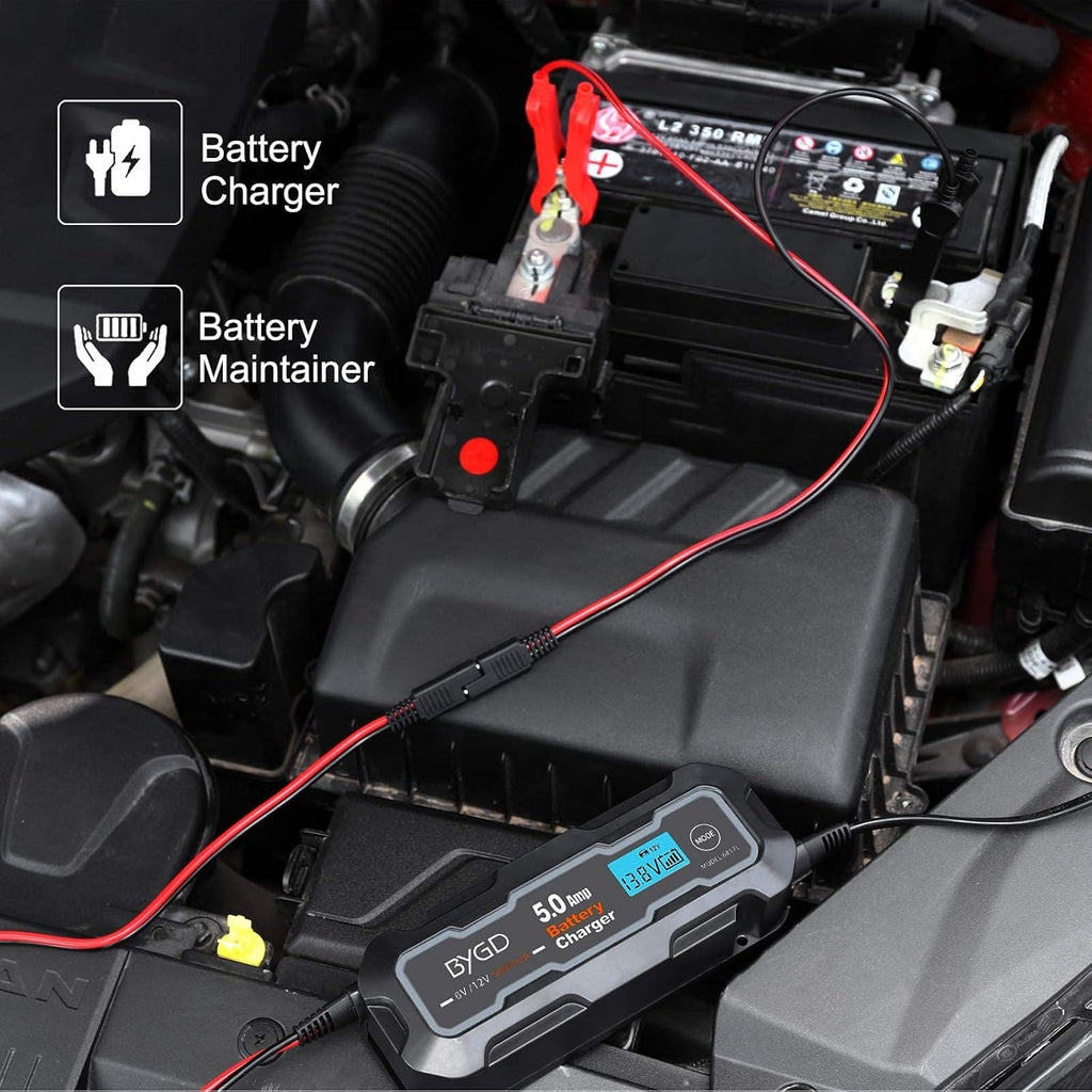 Never worry about a flat battery again. This 5A smart car battery charger with an LCD display makes it easy to charge, maintain, and protect your vehicle’s battery automatically. Whether it’s your car, motorcycle, boat, or lawn mower - you’ll always be ready to go with this intelligent and easy-to-use tool.