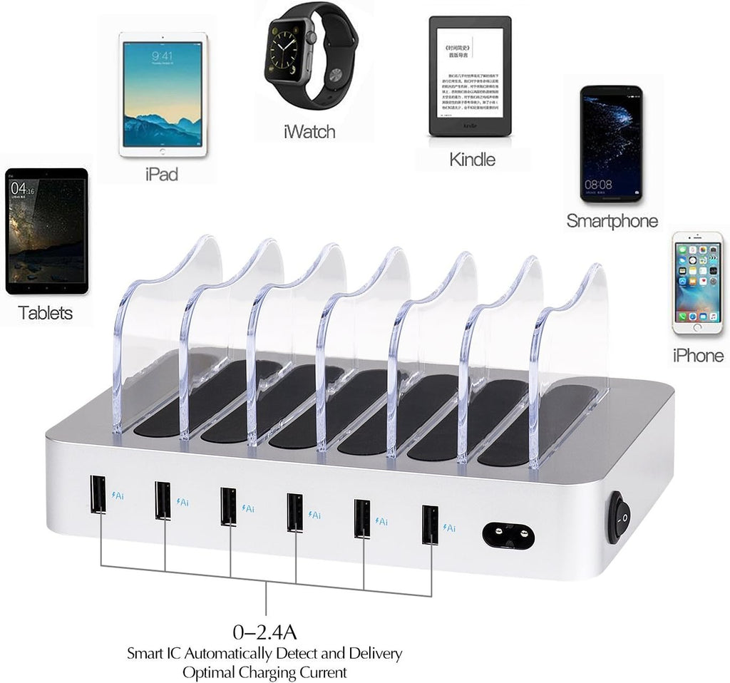 6-Port USB Charging Station – Fast Multi-Device Charger for Phones & Tablets