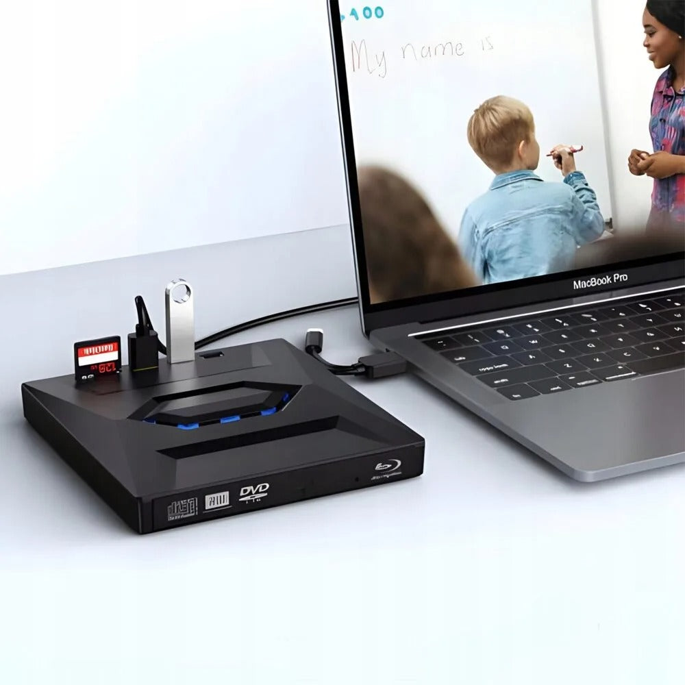 Tired of juggling cables and devices? This 7-in-1 external DVD player is your all-in-one solution for watching movies, burning discs, transferring data, and reading cards - anywhere you go. Compact, powerful, and versatile, it’s the perfect upgrade for your digital life.