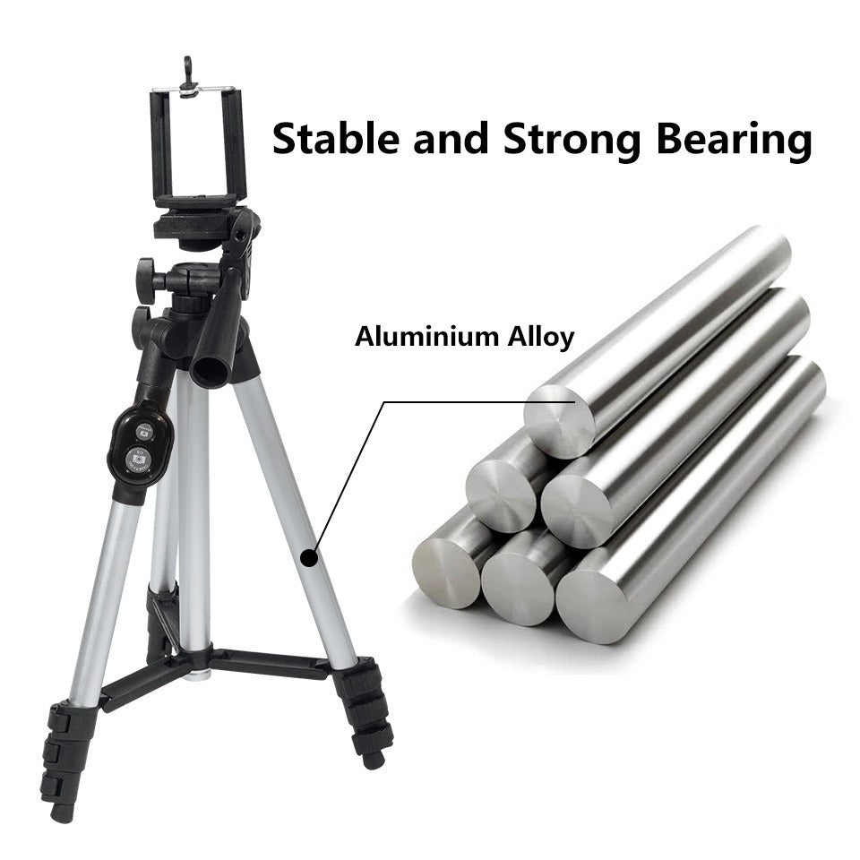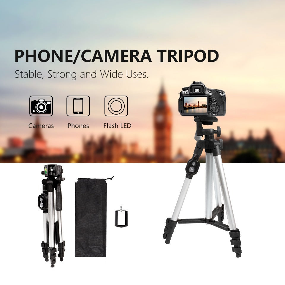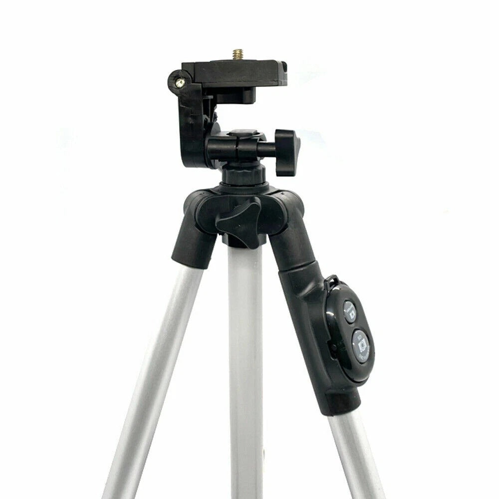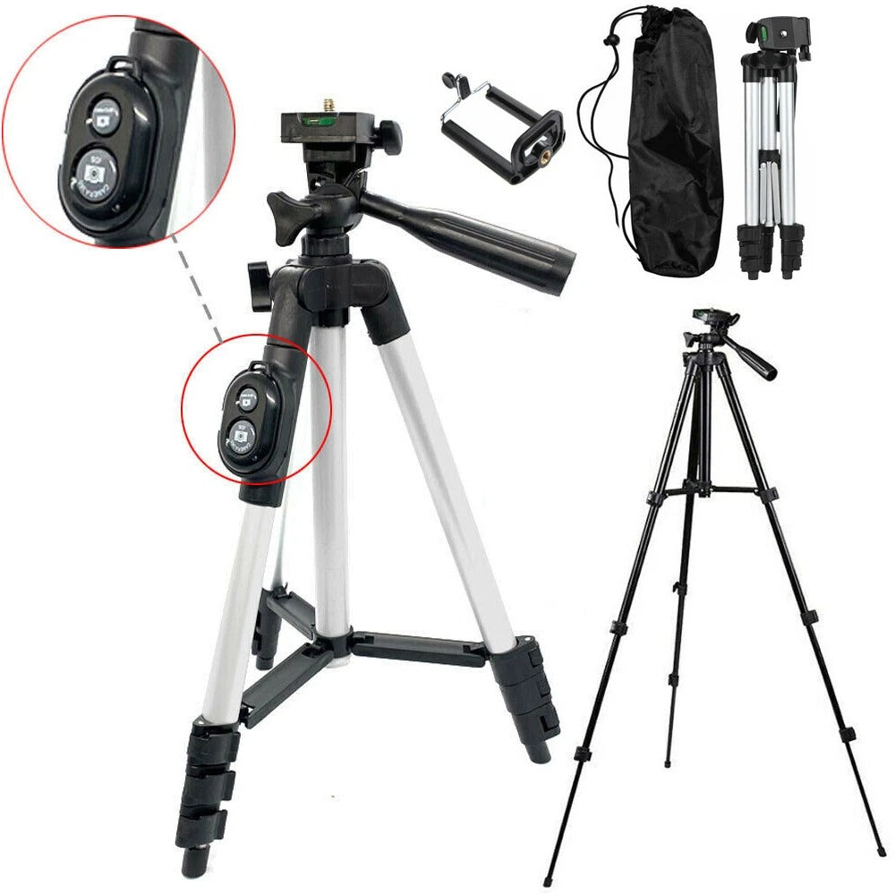 Create your best content anywhere, anytime, with this versatile camera tripod stand designed for smartphones and cameras alike. Whether you're a vlogger, a remote worker, or just love taking perfect family shots, this tripod is your ideal daily partner. With 4 adjustable height settings, a Bluetooth remote, and universal phone holder, you're always ready to frame the shot just the way you like it.
