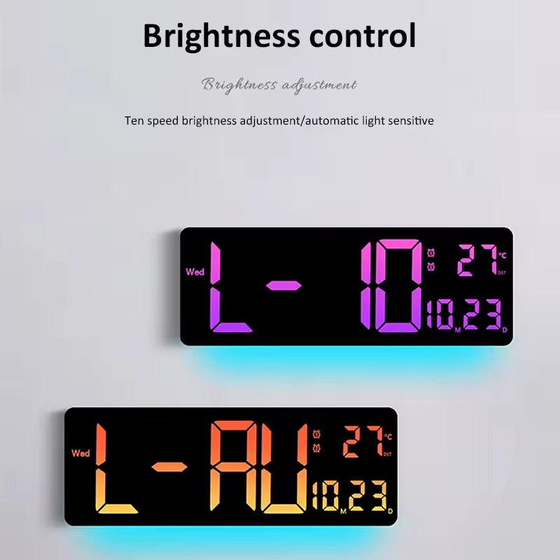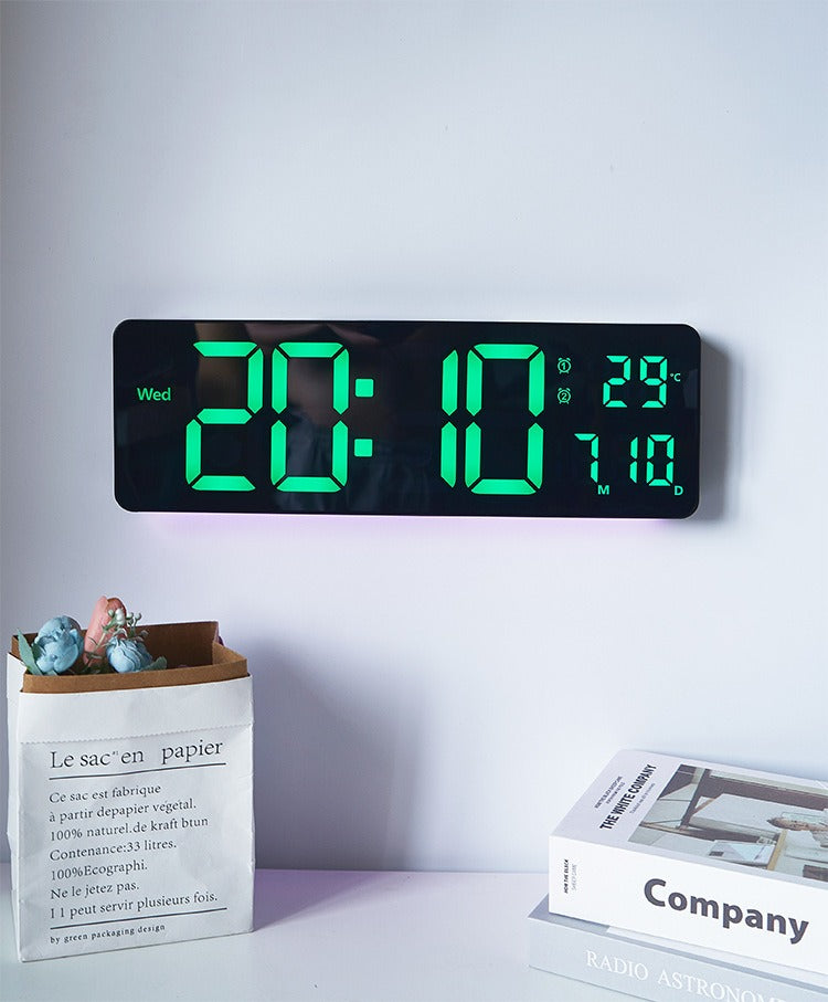 The ultra-large 16-inch LED screen shows the time, date, day, and temperature at a glance - even from across the room.