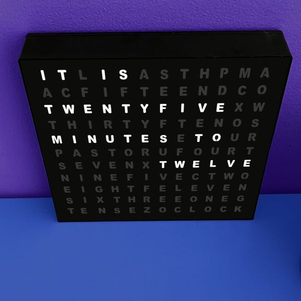 Forget the ticking hands - this clock spells out the time using illuminated words, refreshing every five minutes for a modern twist on traditional timekeeping.