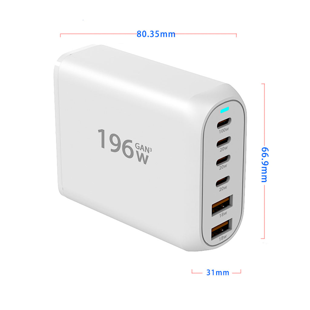 Stop dealing with messy cables, multiple plugs, and limited outlets. With this 196W USB charger, you stay organized and fully powered - whether you’re working, traveling, or relaxing at home. Charging has never been easier.