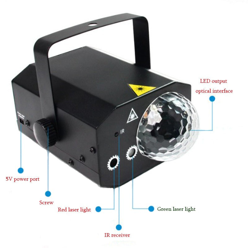 Why settle for just one effect when you can have laser beams and disco strobes working in perfect harmony? The red and green lasers cut through the room with precision, while the LED disco ball fills the space with color, creating a truly immersive light show.